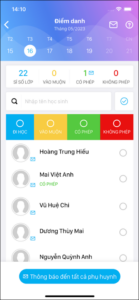 - Ứng dụng tự động thống kê sĩ số lớp, số học sinh nghỉ học có phép và số học sinh nghỉ học không phép trong ngày.