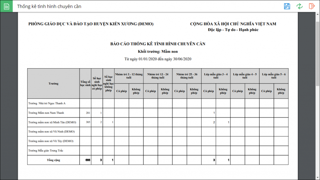 - Mục đích: giúp cán bộ PGD theo dõi tình hình chuyên cần của trẻ, đảm bảo duy trì sĩ số.