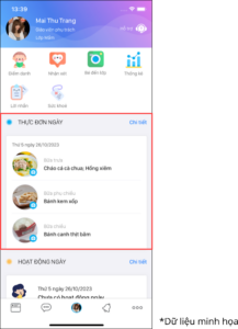 - Sau khi đăng nhập vào ứng dụng, anh/chị có thể theo dõi thông tin Thực đơn ngày hôm nay.