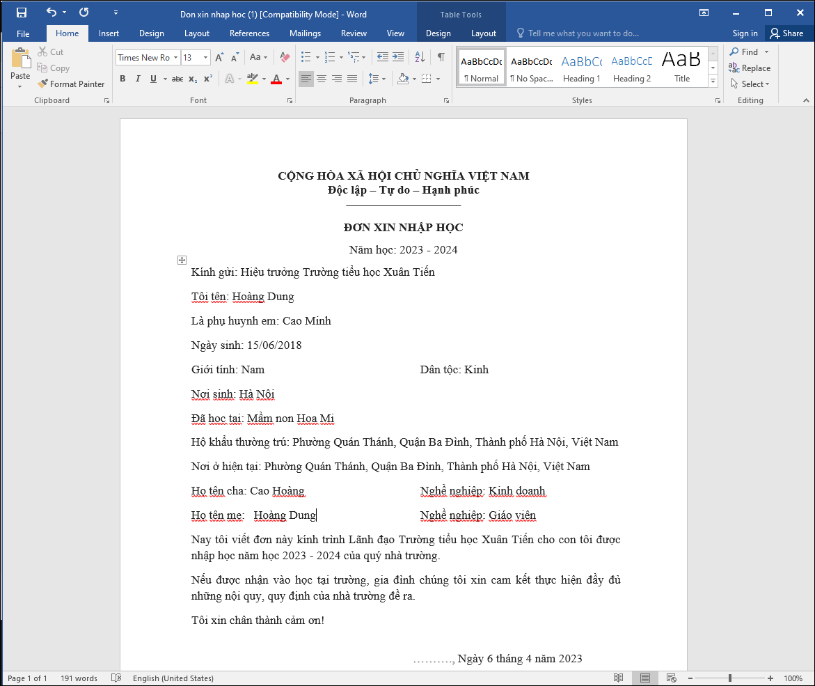- Có thể chỉnh sửa thông tin trên Đơn xin nhập học vừa tải (nếu cần) và in bản cứng nộp nhà trường.