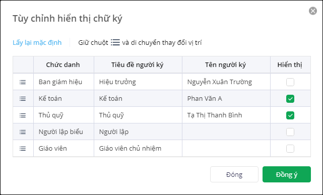 - Anh/chị tùy chỉnh hiển thị chữ ký theo mong muốn đơn vị mình như sau: