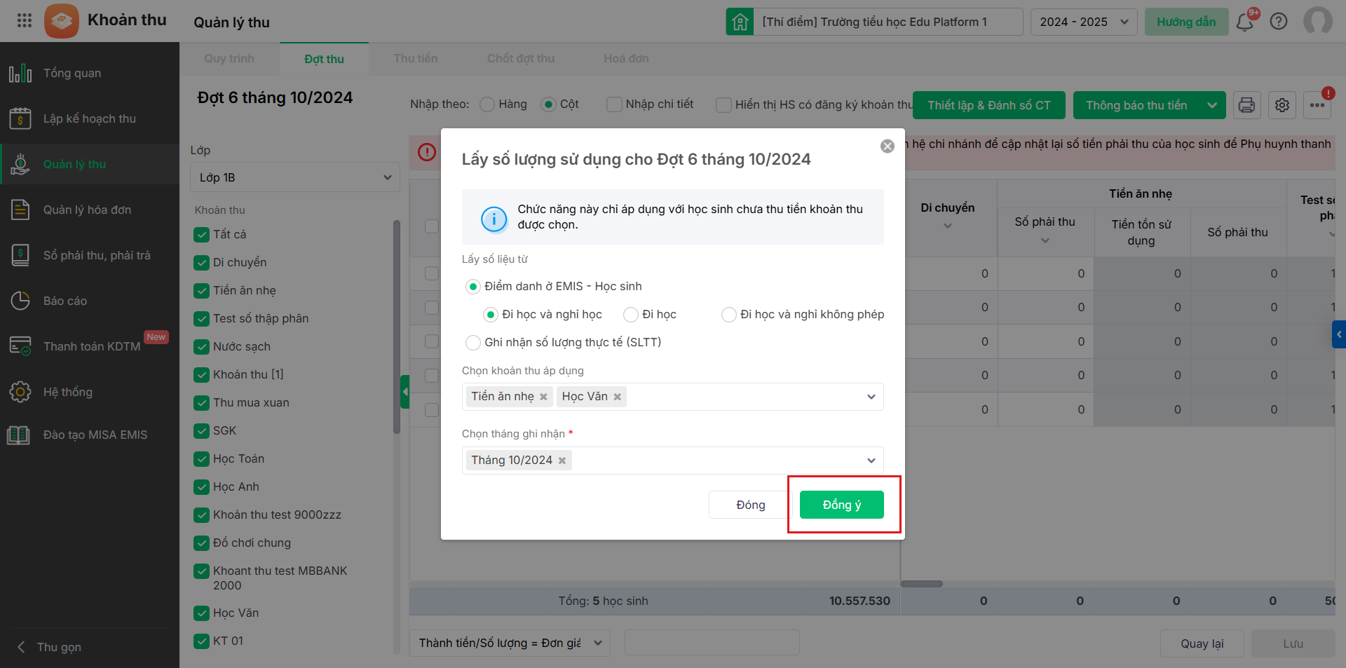 4. Nhấn Đồng ý để hoàn tất lập đợt thu mới.