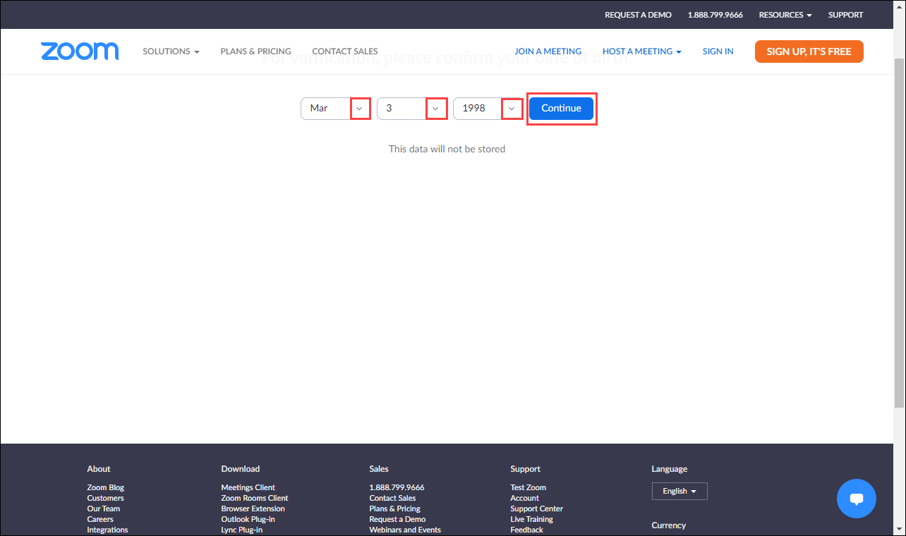 - Nhập ngày sinh của anh/chị, nhấn Continue (máy tính)
