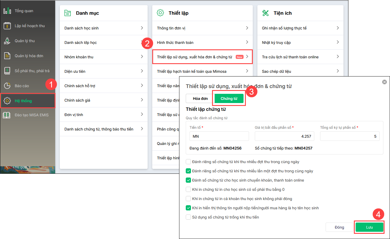 Bước 1: Thiết lập quy tắc đánh số chứng từ