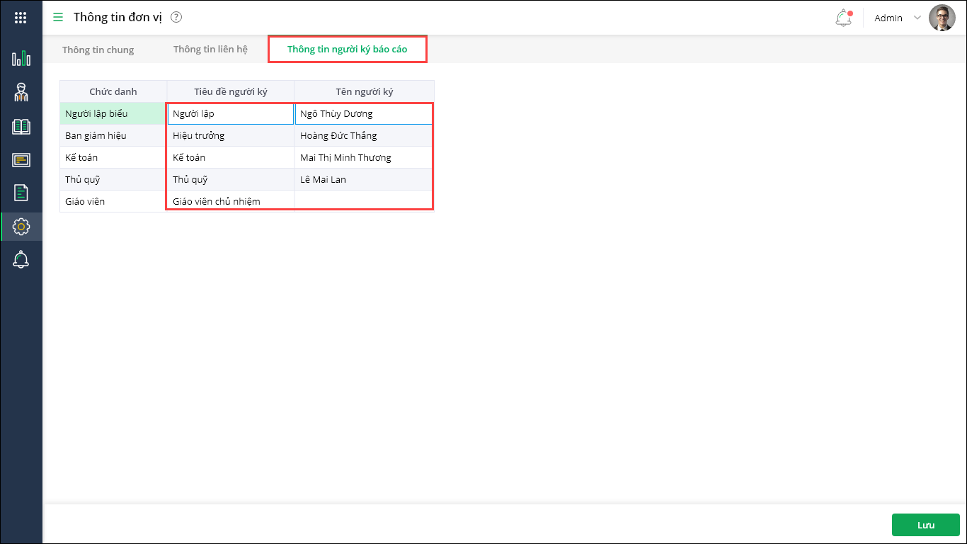 Xem hướng dẫn chi tiết thiết lập thông tin đơn vị tại đây