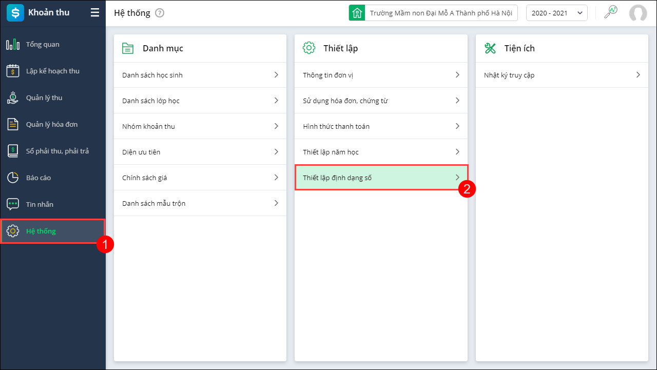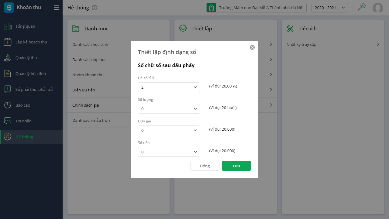 - Vào Khoản thu\Hệ Thống\Thiết lập định dạng số