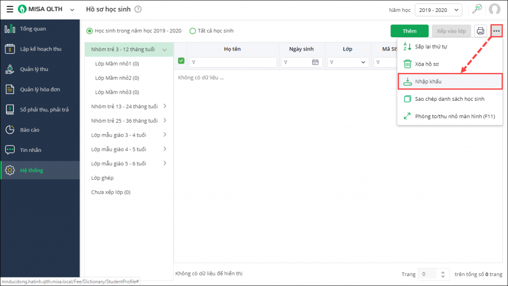 1. Vào Hệ thống\Danh sách học sinh