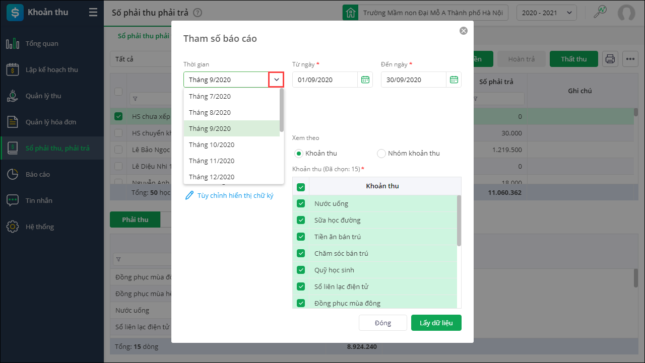 6. Chọn Xem theo Khoản thu hoặc Nhóm khoản thu